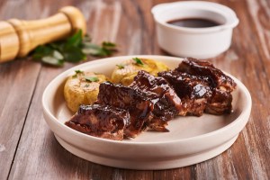 Costelinha suína com barbecue de jabuticaba e batatas ao murro, do Leo Hamu